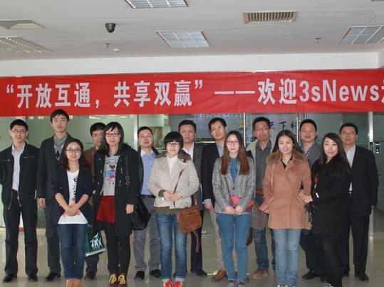 2014年3月17日下午,3sNews的采編團(tuán)隊在總裁劉玉璋帶隊下,來到中科宇圖天下科技有限公司參觀學(xué)習(xí),受到了中科宇圖副總裁/中科宇圖資源環(huán)境科學(xué)研究院院長劉銳等公司領(lǐng)導(dǎo)的熱情接待。